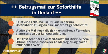 Das NRW-Wirtschaftsministerium warnt vor einer Fake-Mail, in der um die Datenübermittlung an das Finanzamt gebeten wird.